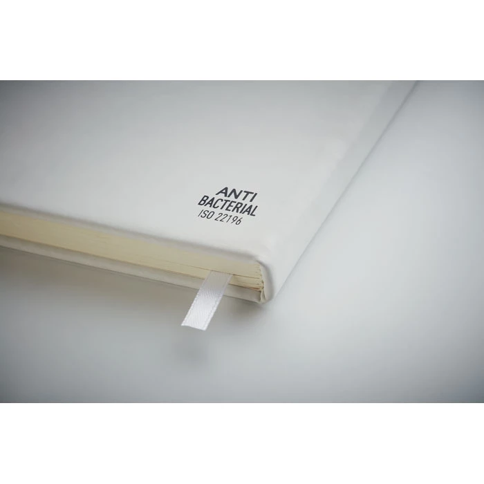 Notatnik A5 z antybakteryjną twardą okładką z PU. Powłoka ta zawiera specjalny dodatek (nanosrebro), który zapobiega kolonizacji bakterii na powierzchni notatnika. 96 kartek w linie (70 gr) zapewnia wystarczająco dużo miejsca, aby zapisać wszystkie ważne notatki. Elastyczne zamknięcie sprawia, że notatnik pozostaje zamknięty podczas podróży, a wstążka pozwala łatwo znaleźć ostatnio zapisaną notatkę. ISO 22196. FSC®-certified | FSC MIX CREDIT, P7.1, FSC-C213206
