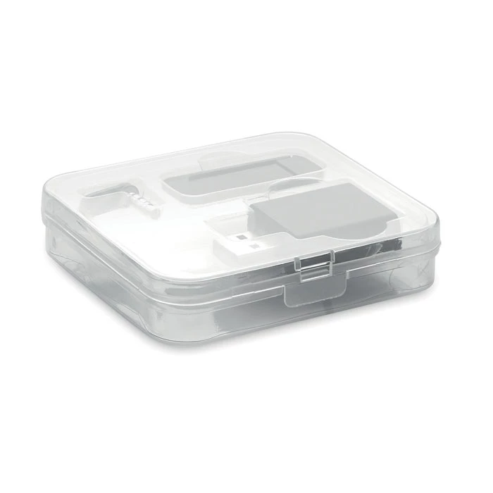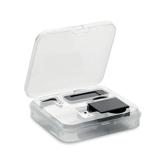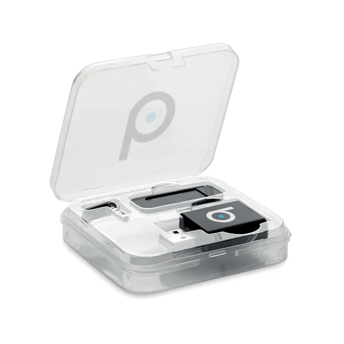 Zestaw w etui z PP z blockerem kamery internetowej, danych i dźwięku.