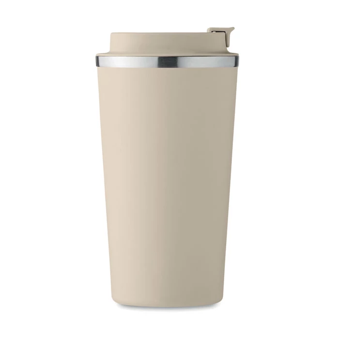 Kubek z podwójnymi ściankami z recyklingowanej stali nierdzewnej (90% z recyklingowanej stali nierdzewnej i 10% ze stali nierdzewnej) i pokrywką z PP. Pojemność: 510 ml. Nie przecieka.